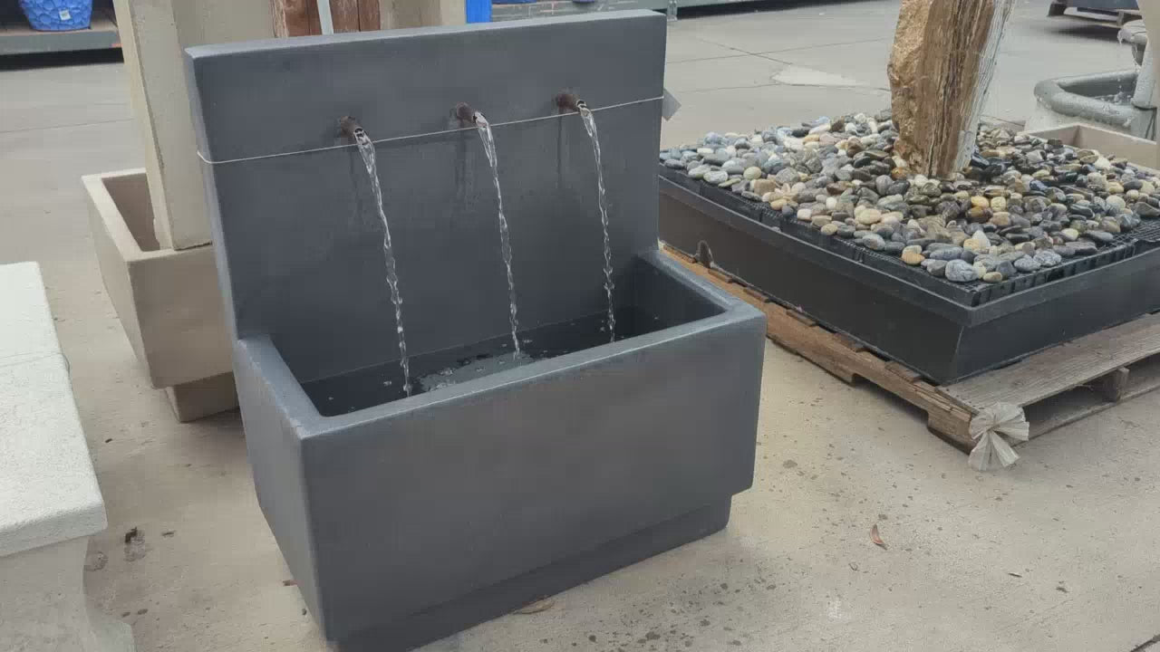 Water jets from the copper spouts into the nearly 3-foot wide pool. The Tribus Concrete Wall Fountain produces strong ambient sounds that promote relaxation and will help hide street noise.