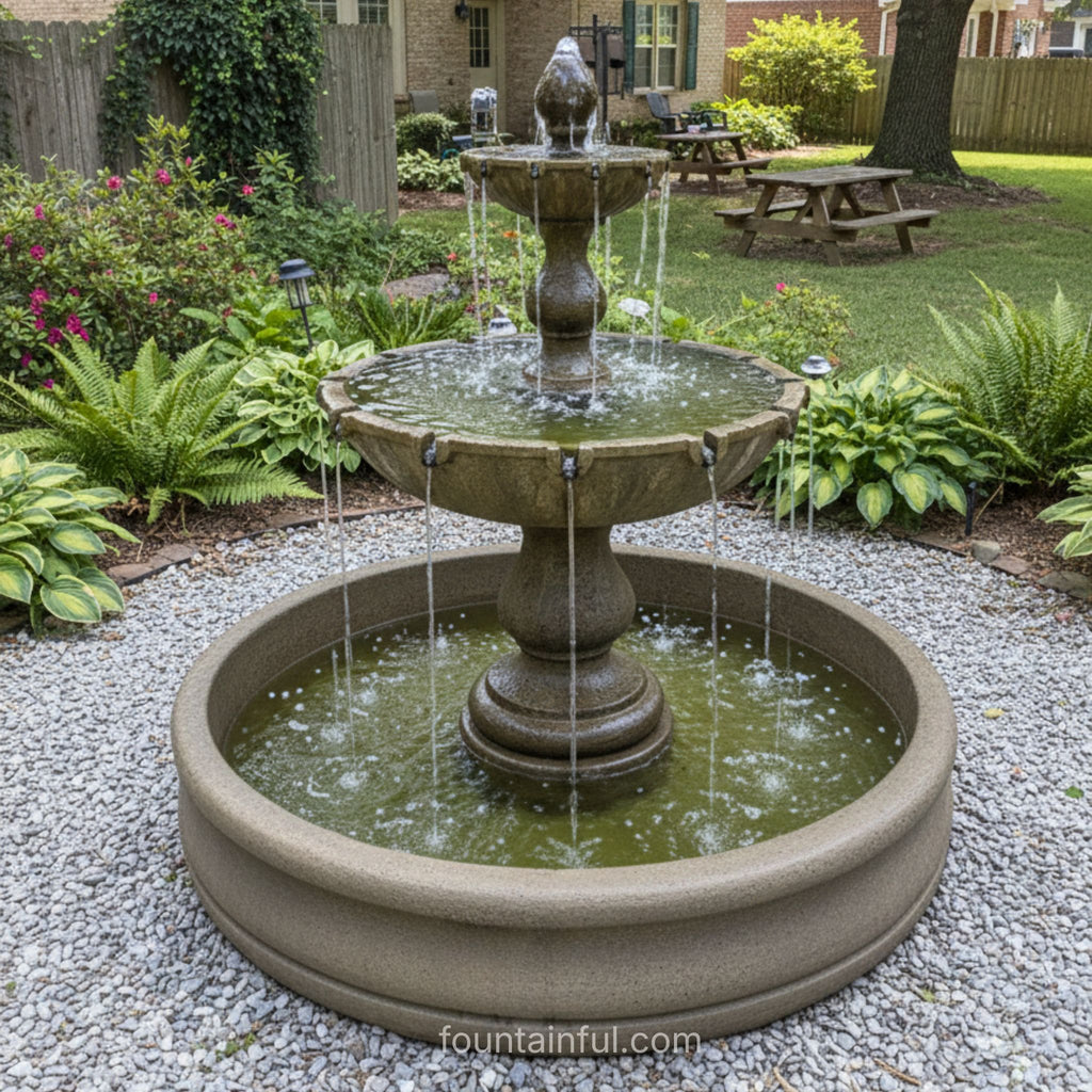 Enjoy the charm and craftsmanship of this 921-pound cast stone concrete fountain. Includes pump.