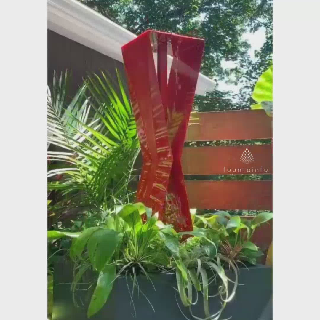 The X2 Mini by artist Randy Bolander is a patio-size version of the sculptor's popular X-Series water features. The sculpture depicts a closed letter "X" with a central structure that serves as the water conduit.